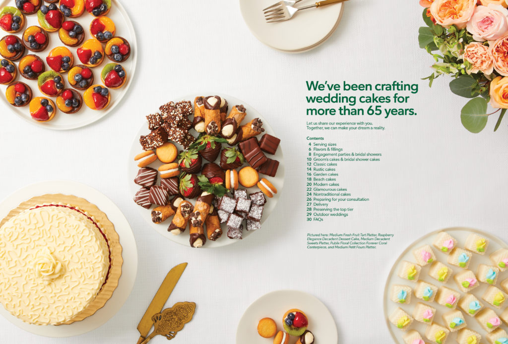 All Publix wedding cake designs were reimagined and/or replaced with new designs. The wedding cake landing page content, customer journey, and creative was updated. A new product catalog was also created for all wedding cakes, wedding cupcakes, bridal shower and engagement cakes.